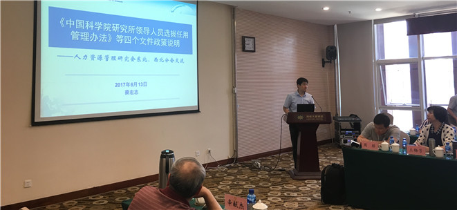 会议特别邀请了院人事局领导干部处处长蔡宏志,针对院制定的《中国科学院研究所领导人员选拔任用管理办法》、《中国科学院研究所领导班子与领导人员管理办法》、《中国科学院所级后备领导人员选拔培养和管理办法》、《中国科学院研究所中层领导人员选拔聘用和管理实施办法》等文件规定进行了政策解读,并对院干部管理相关工作中经常涉及的问题进行了答疑。