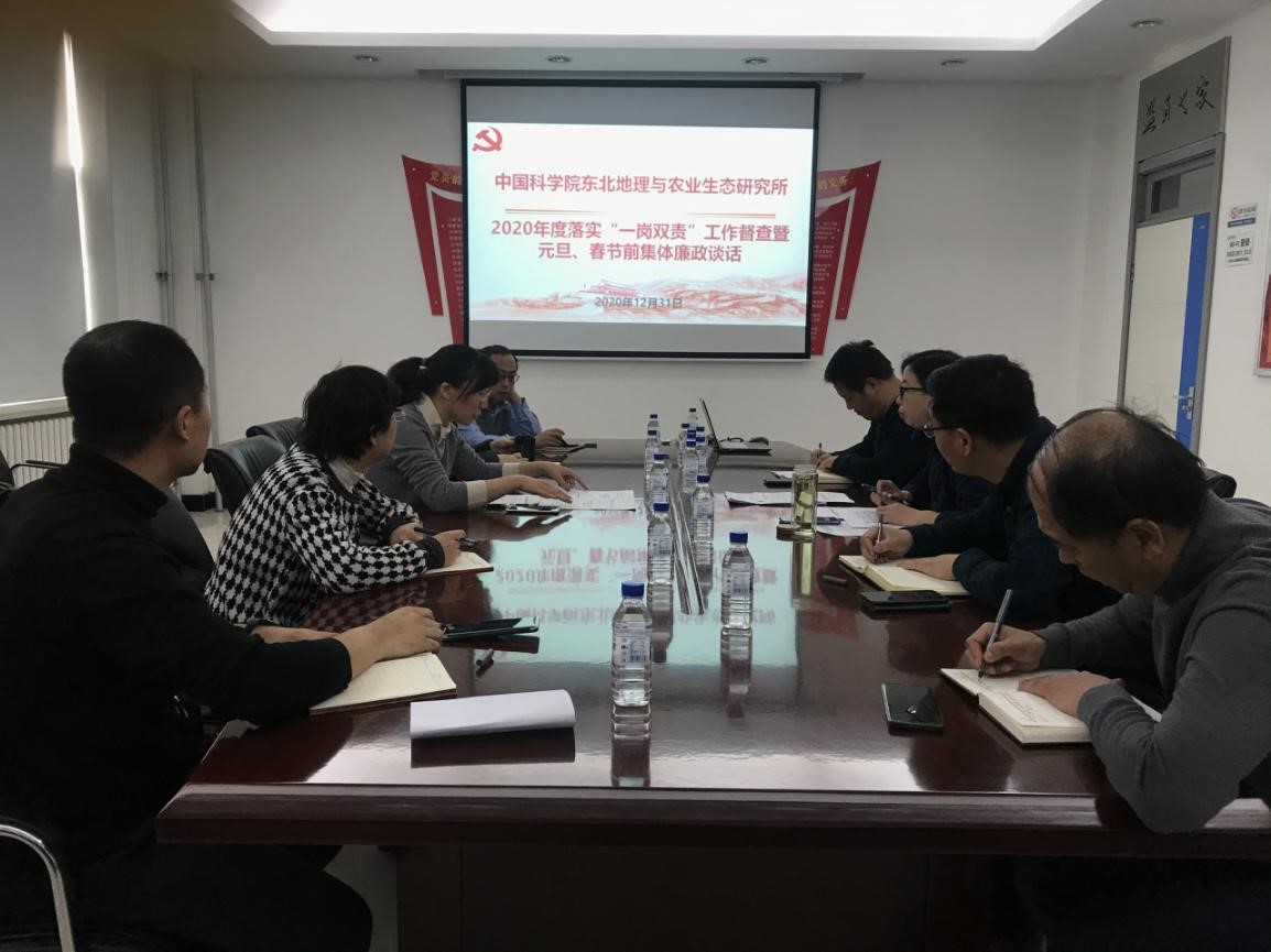 2020年12月31日,东北地理所召开2020年度落实“一岗双责”工作督查暨元旦、春节前集体廉政谈话会议,各部门负责人参加会议,党委副书记、纪委书记王晓慧主持会议并进行节前集体廉政谈话。