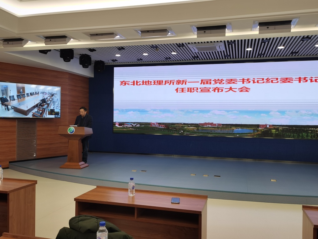 2021年1月18日,东北地理所召开新一届党委书记纪委书记任职宣布大会。中国科学院长春分院分党组书记、院长甘建国,组织人事处处长彦飞,党群工作处处长尚阳以及东北地理所党政班子成员,党委委员,纪委委员,机关职能部门及重点实验室(中心)负责人,支部(总支)书记等参加了宣布大会,会议由甘建国主持。