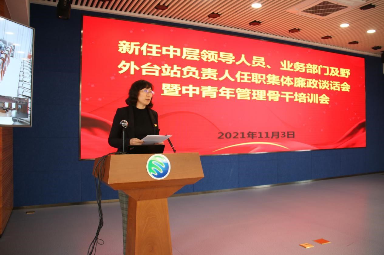 党委书记苏阳代表所党委与中层干部作集体廉政谈话,并对中层干部进行了上岗专题培训。他以“守住底线 锐意进取 创先争优——做忠诚 干净 担当 履职尽责的党的好干部”为题作专题报告。他从年龄结构、学历结构、专业背景、政治面貌等方面对新任职中层干部整体情况进行了全面梳理。他指出,这次调整按“精兵简政、按需设岗、双向选择、竞争上岗”的原则,坚持把政治标准放在首位,选拔聘用又红又专的干部,为更多专业背景好同时具有一定管理能力的优秀的年轻人提供了锻炼机会。他进一步阐述了廉政谈话的目的和意义,对中层干部提出廉洁从政的具体要求,并结合习近平总书记在2021年秋季学期中央党校(国家行政学院)中青年干部培训班开班式上发表的重要讲话精神,对中层干部强化责任意识、履职担当提出五点要求:一要加强政治理论学习,二要有崇高理想和坚定信念,三要坚持一切从实际出发,四要敢担当、善作为,坚持斗争精神,五要讲规矩、守底线。