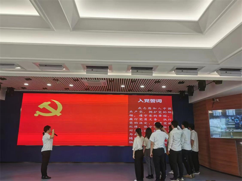 近两年入党党员面向党旗进行了庄严的入党宣誓。铿锵有力的誓言,表达了他们对党的无限忠诚和热爱,以及听党话、跟党走的坚定决心。
